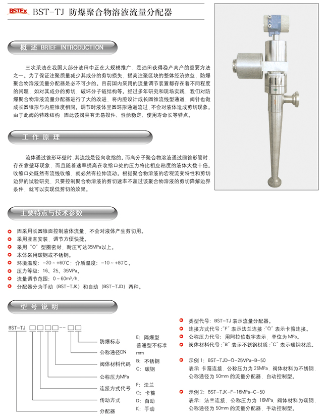BST-TJ防爆聚合物溶液流量分配器